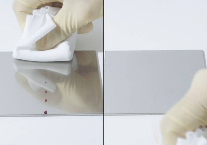 - 非粘着層:ナノスケールのシリコーン系、あるいはフッ素系の非粘着膜が2層目の微小凹凸に追従し隙間なく覆います。